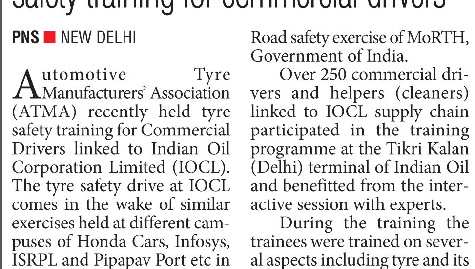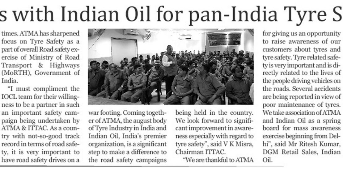 ATMA joins hands with Indian Oil for pan-India Tyre Safety programme